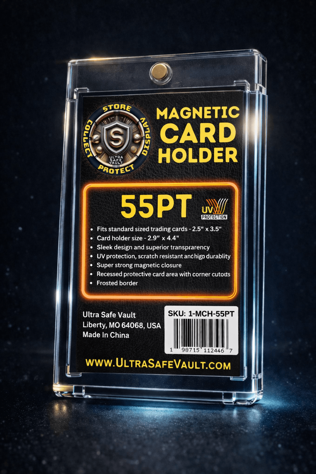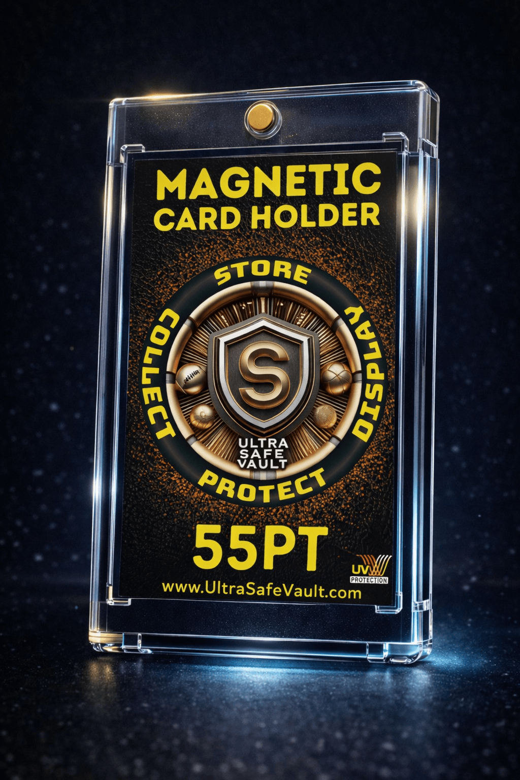 Premium 55PT magnetic card holder with UV protection. Designed for slightly thicker cards and inserts. Designed for collectors who prefer magnetic one-touch style holders.